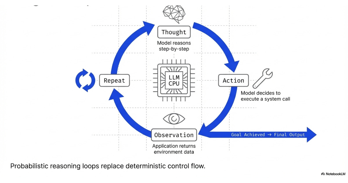 This is the ReAct pattern (Reason + Act), and it has become the default agent loop architecture.