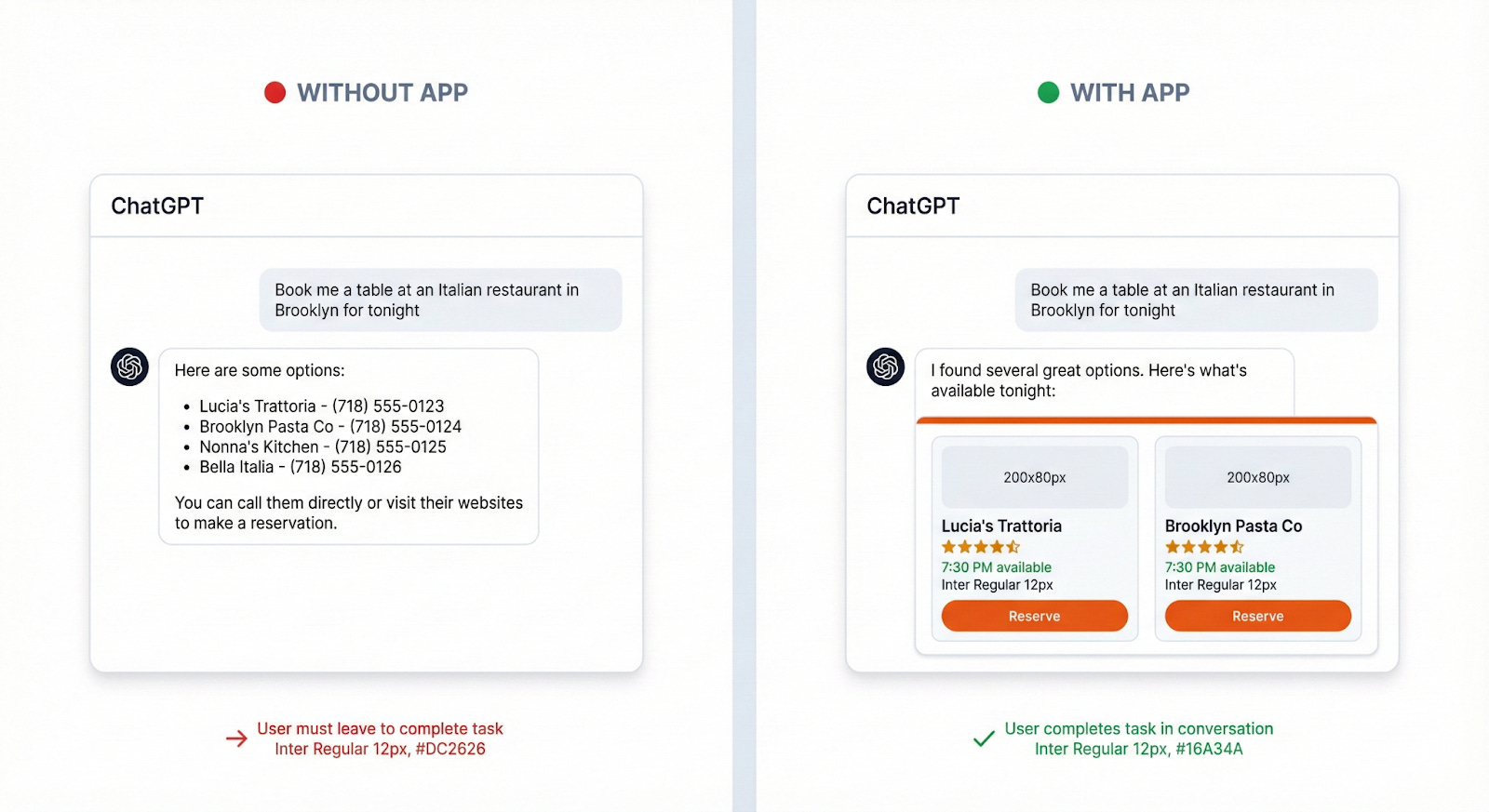 Ask ChatGPT to book a restaurant, and normally, it explains how. It lists options, gives links, and tells you what to search for. Helpful, but nothing actually changes in the world.