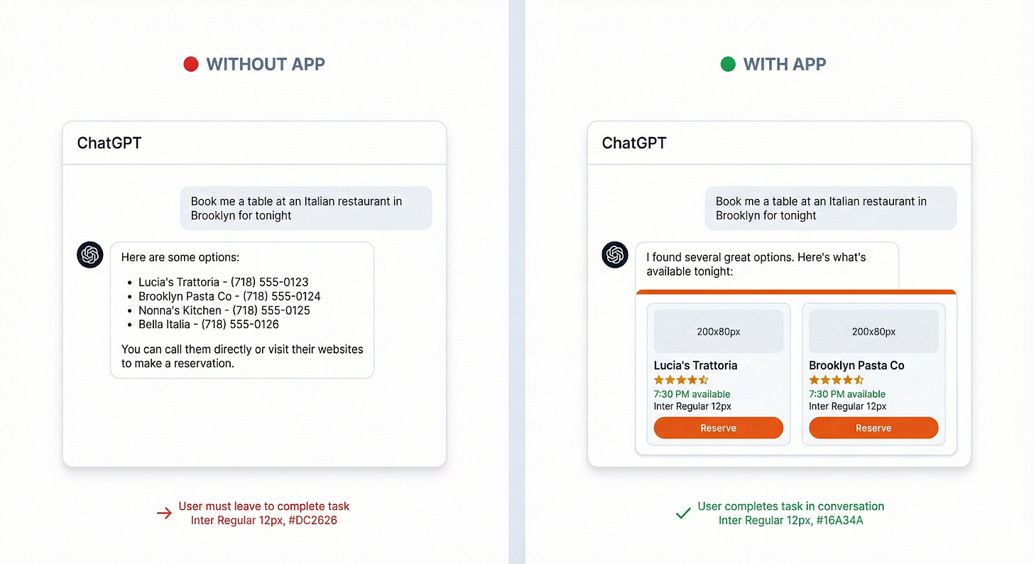 Instead of just calling APIs and returning text, Apps can render full interactive widgets directly in the conversation. You can show a map, display a booking form, or let users interact with a spreadsheet.