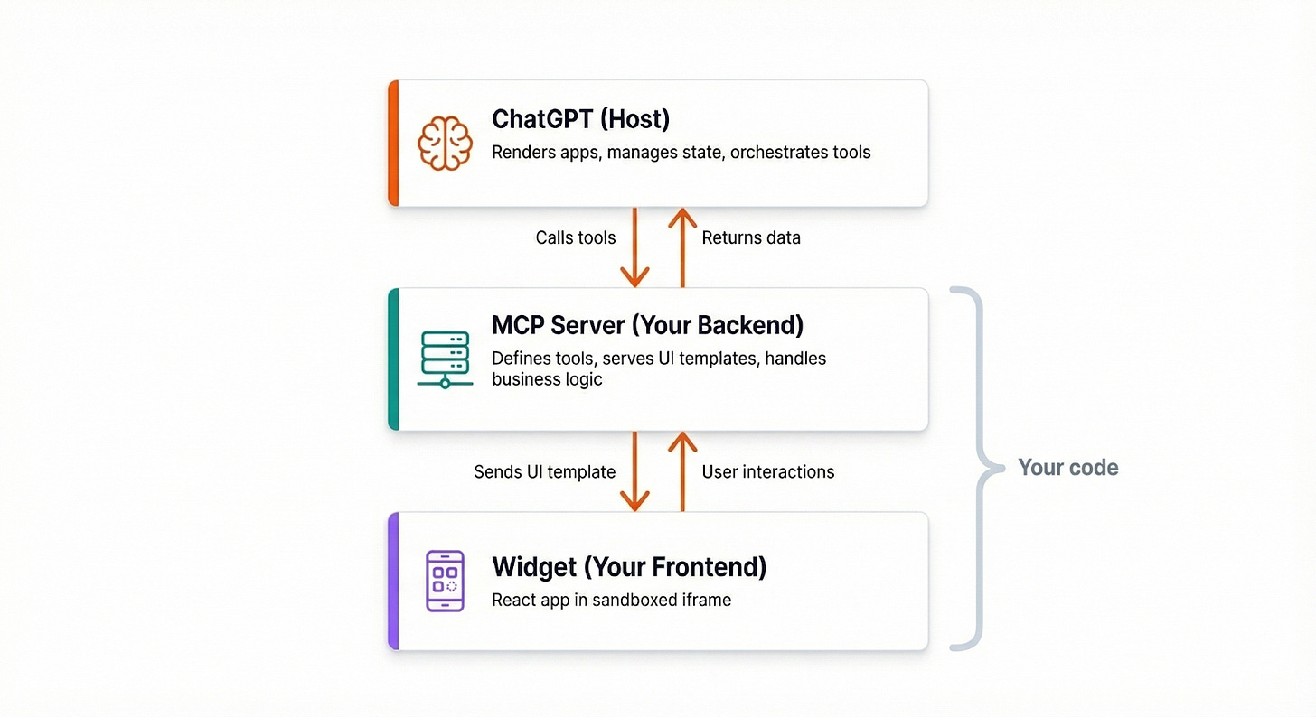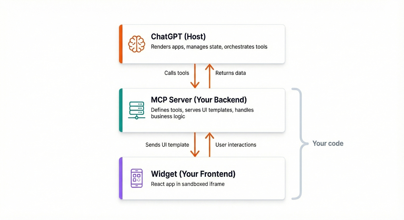 The third is ChatGPT itself, which acts as the host. It decides when to call your tools, renders your widgets, and manages the conversation state.