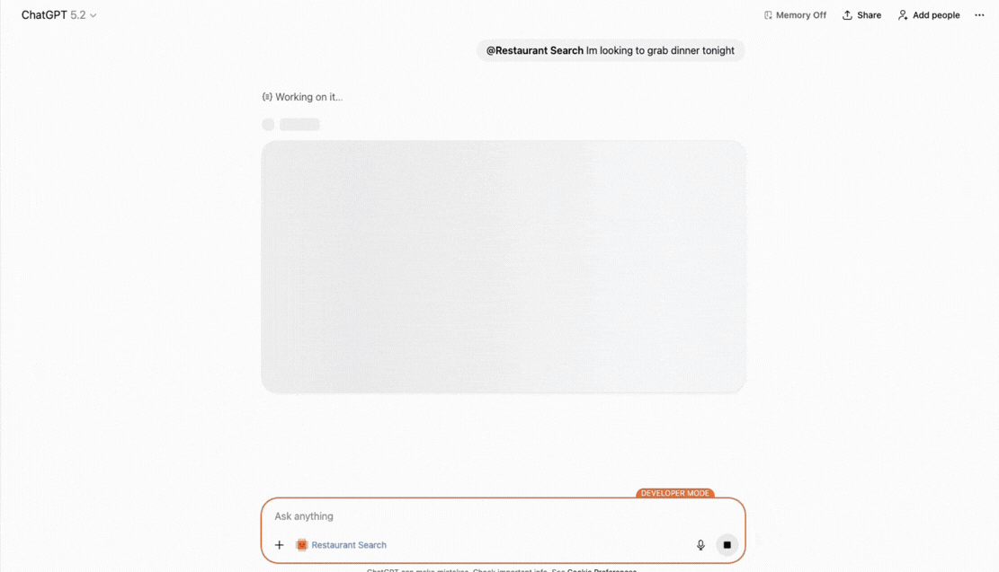 Now ask ChatGPT with a restaurant app installed, and something different happens.