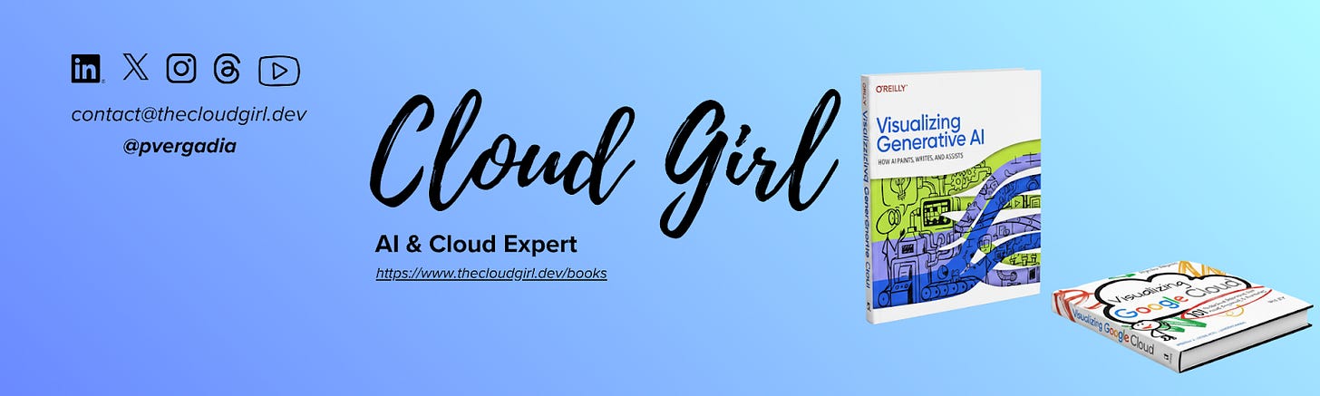 Also subscribe to her newsletter, Cloud Girl Bytes, and follow her on LinkedIn, Twitter, YouTube, or the social network of your choice. It’ll help you quickly master cloud and AI.