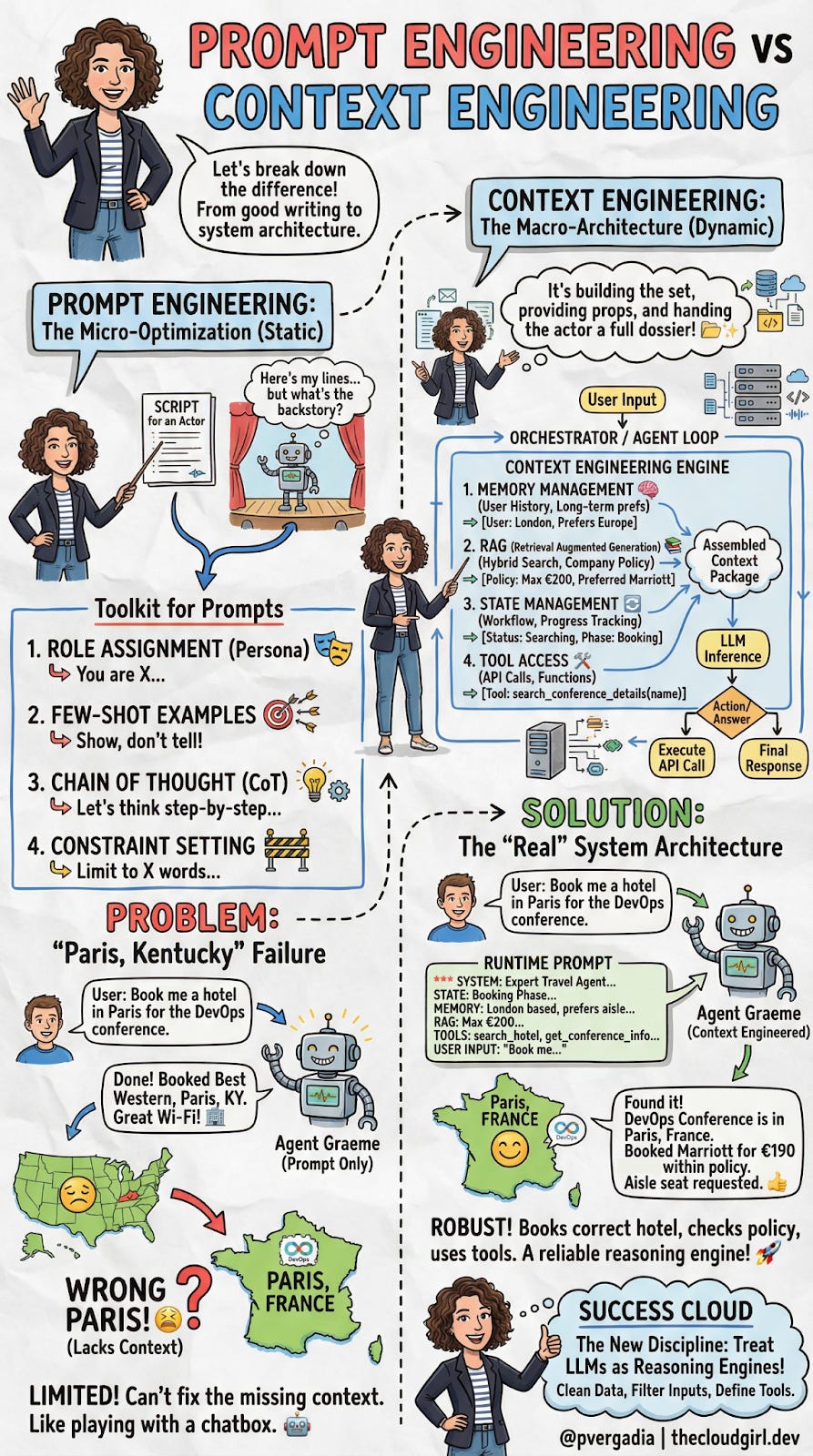If Prompt Engineering is handing a script to your improv actor, Context Engineering is building the entire stage, providing the props, dressing the set, and handing them a dossier about their scene partners—all before they speak a single line.