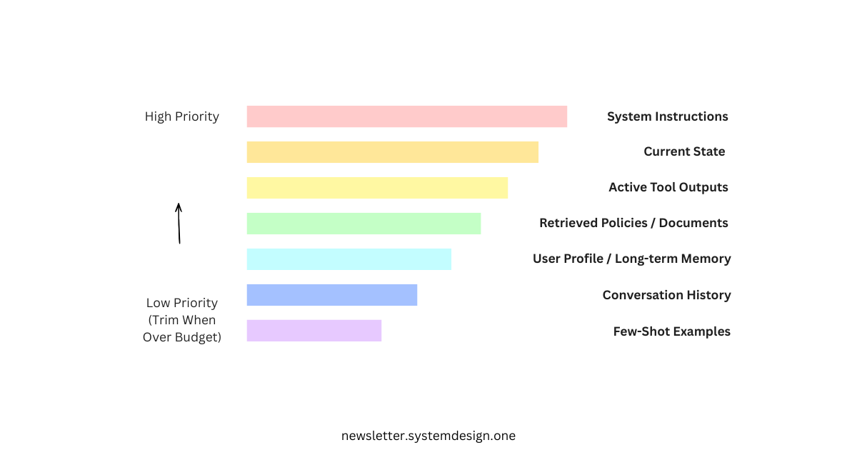 Even with large context windows, you’ll often have more relevant information than you can fit. When the assembled context exceeds your token budget, the system must prioritize.