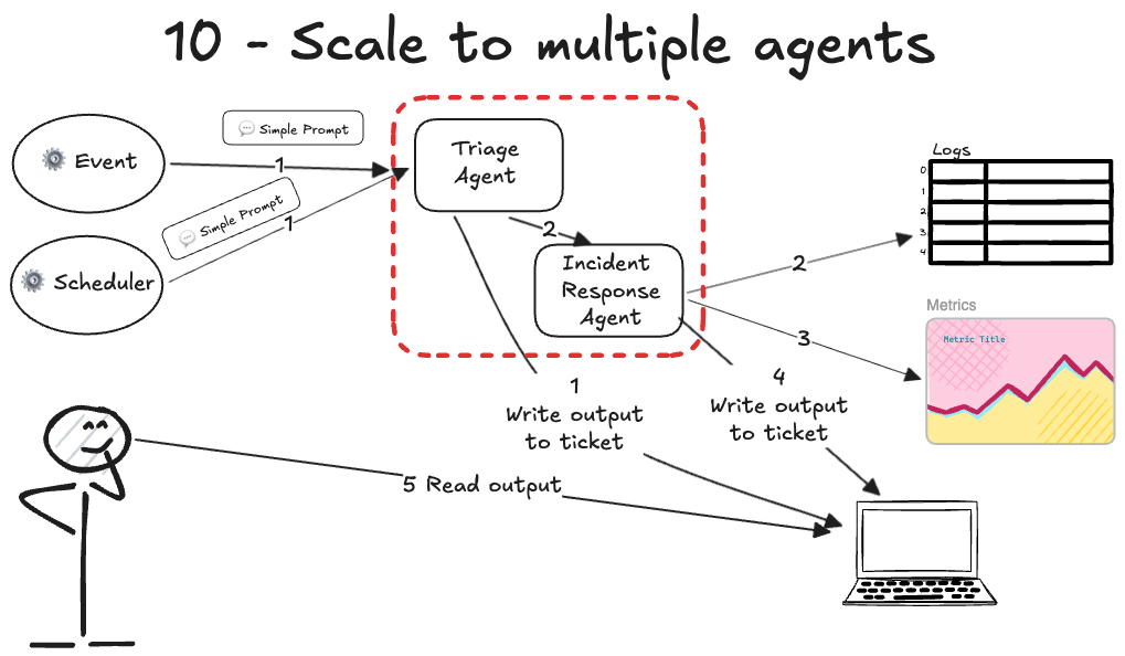 Now that we can delegate most work to AI, you may ask: Why am I still getting paged at 3 am just to invoke the agent and wait?