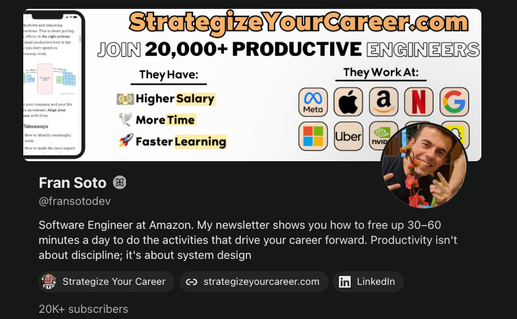 For the next few days, you can also claim a 25% discount on the StrategizeYourCareer annual subscription from the links in this newsletter. Whether you grab the annual discount or just want the free template, join today to become a productive engineer.
