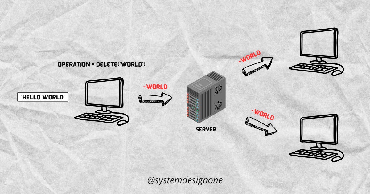 It keeps a document copy for each user and tracks the changes locally. The system doesn’t send the entire document when something changes, but only the difference (diff).