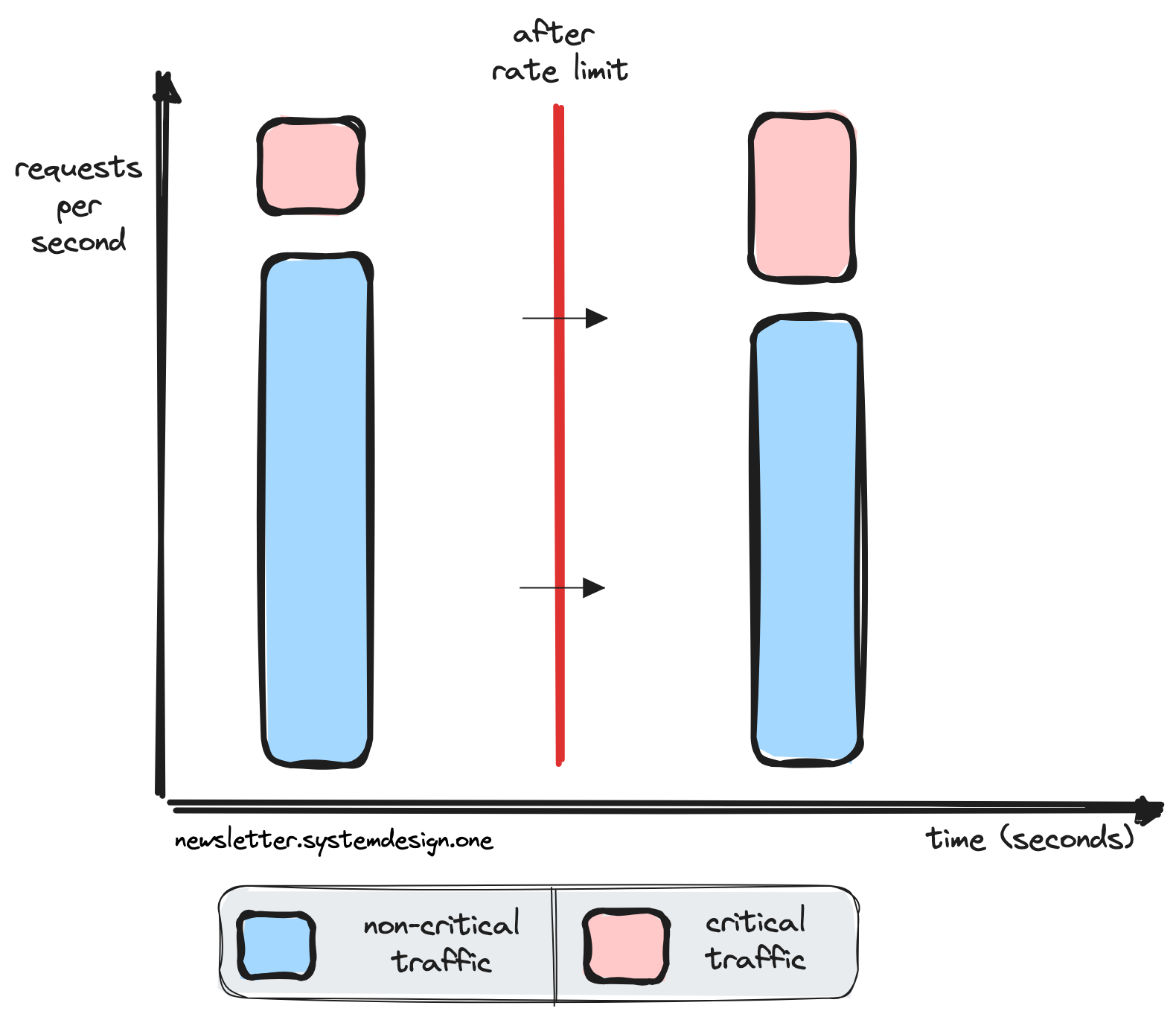 The non-critical traffic gets shed on server overload. And it gets re-enabled after a delay. This rate limiter type is the last line of defense for an API.