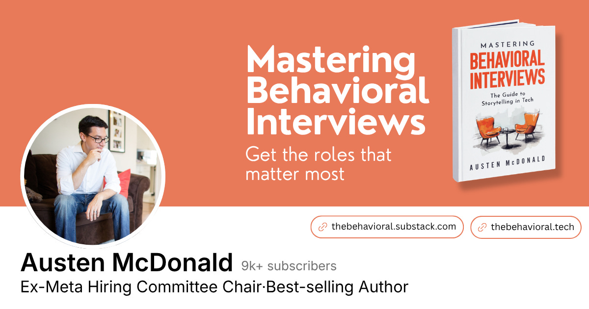 Austen is a former Senior Engineering Manager and Hiring Committee Chair at Meta, where he spent almost 10 years and conducted over 1,000+ interviews. He’s the industry’s resident expert on behavioral interviews and writes about them on his Substack and in his book, Mastering Behavioral Interviews. As AI raises the bar for ownership and independent judgment, behavioral interviews matter more than ever.