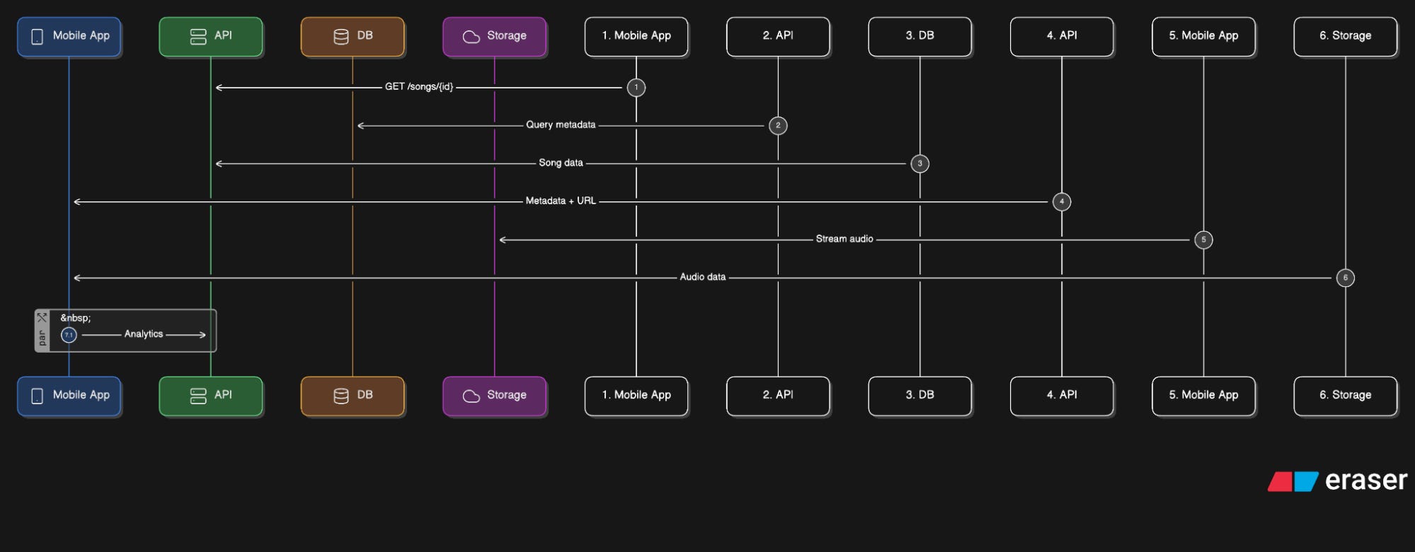 GET /songs/{id}request to the API.API queries the SQL database for song metadata.