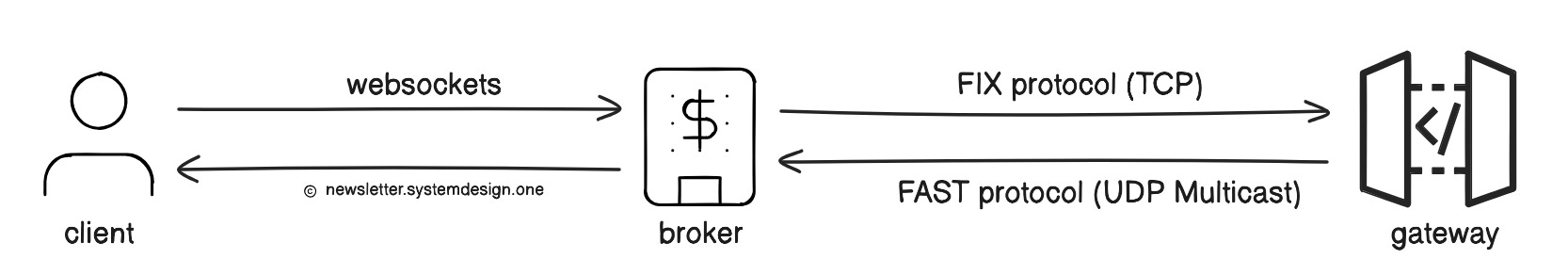 FIX is a text-based protocol. Although reliable, it’s slow because text parsing consumes CPU. Gateway uses a FIX engine to receive and send FIX messages.