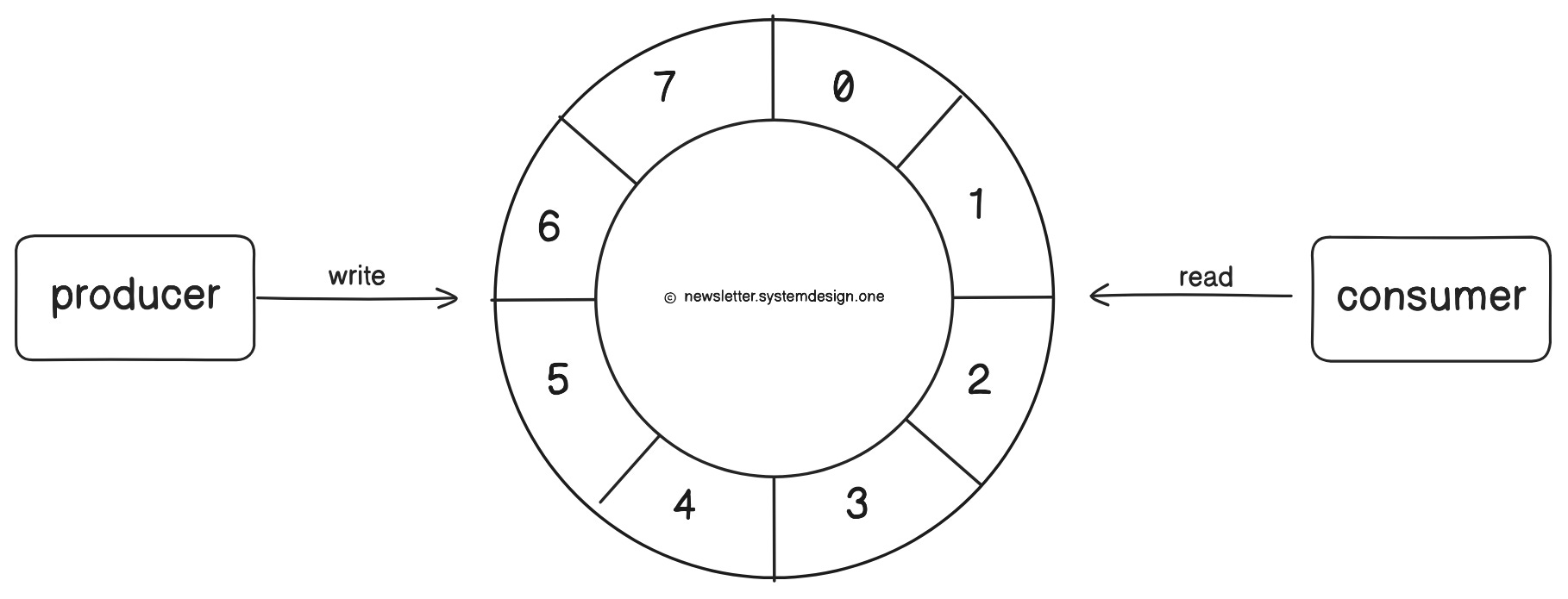 It’s built as a ring buffer (fixed-size circular array with up to 20 million slots).