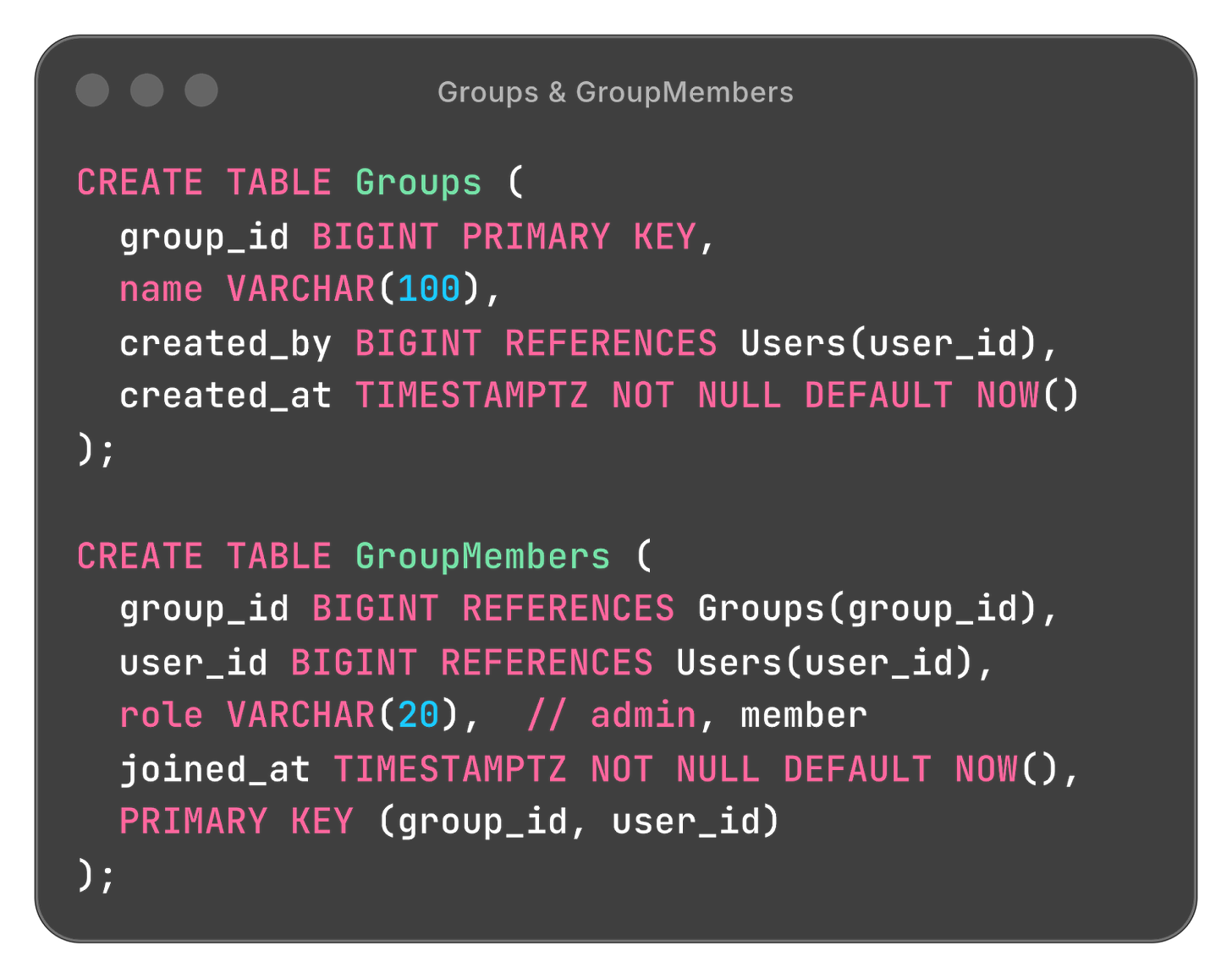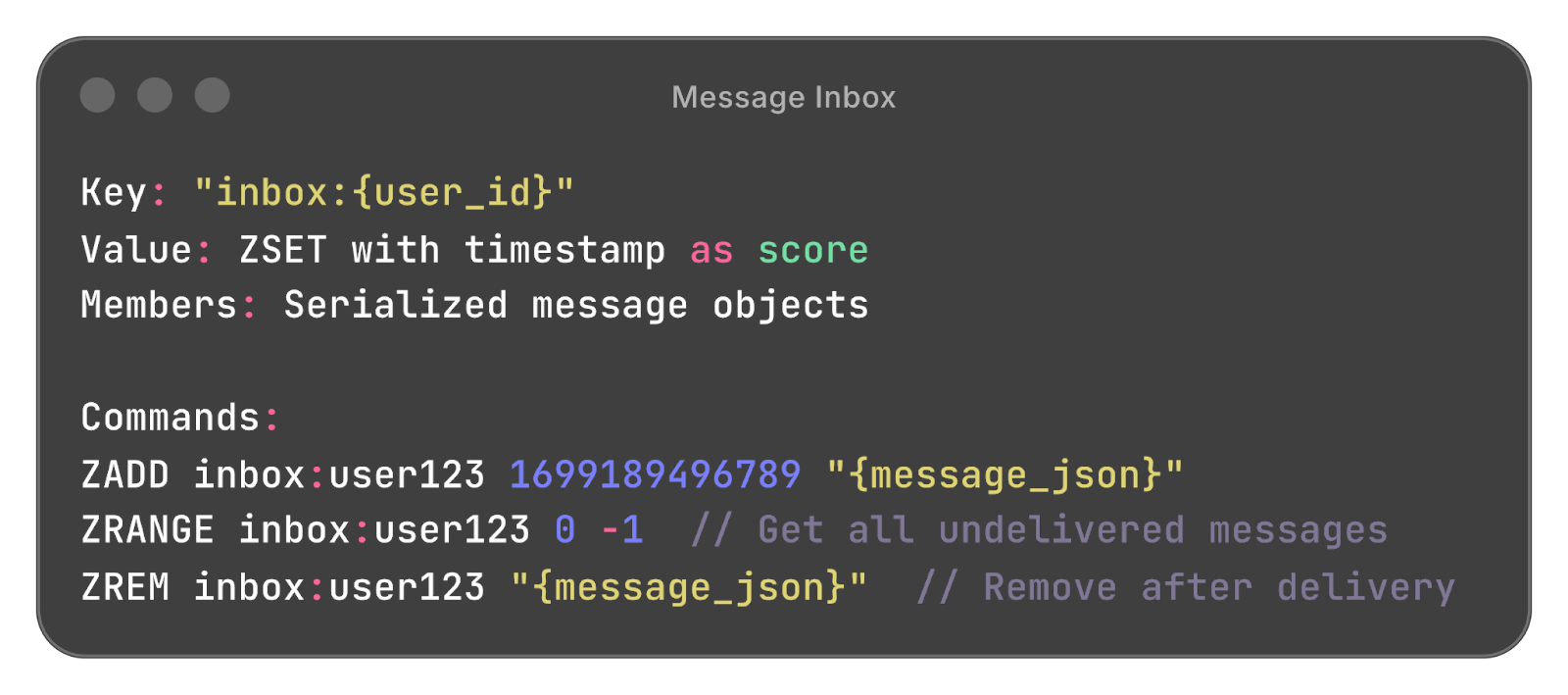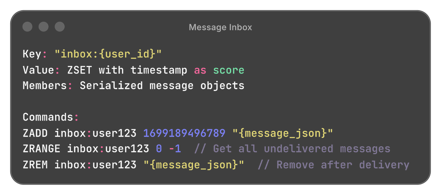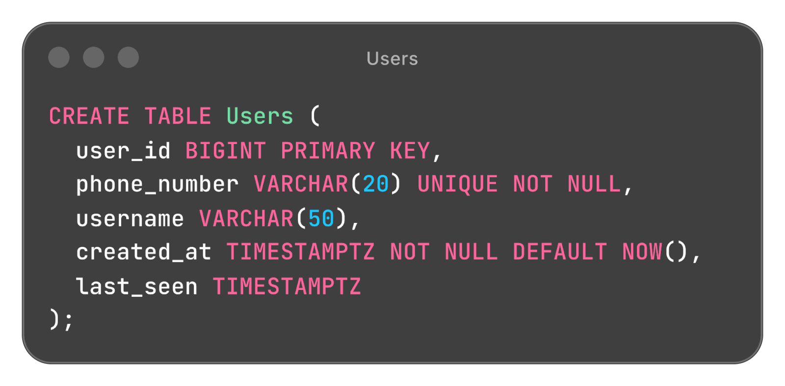 NoSQL works well here (Cassandra, DynamoDB) because we need high write throughput and our query patterns are straightforward (fetch messages by user/conversation/timestamp).